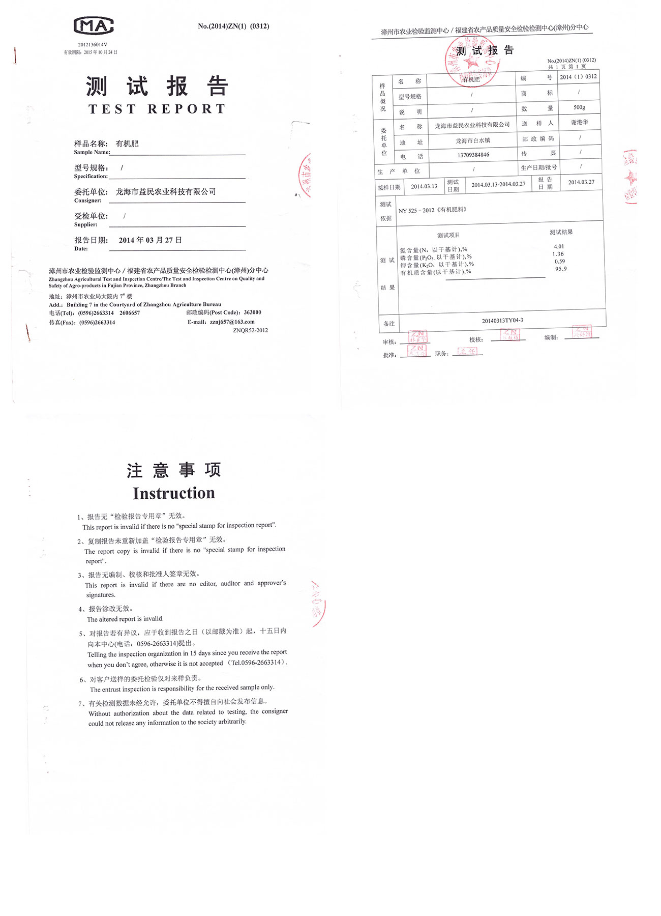 漳州市農(nóng)業(yè)檢驗檢測中心測試報告 有機肥1