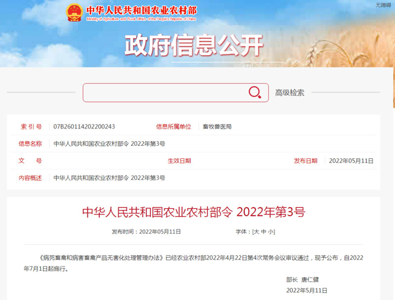 為了加快完善相關(guān)工作機(jī)制,近日,農(nóng)業(yè)農(nóng)村部發(fā)布《病死畜禽和病害畜禽產(chǎn)品無(wú)害化處理管理辦法》。